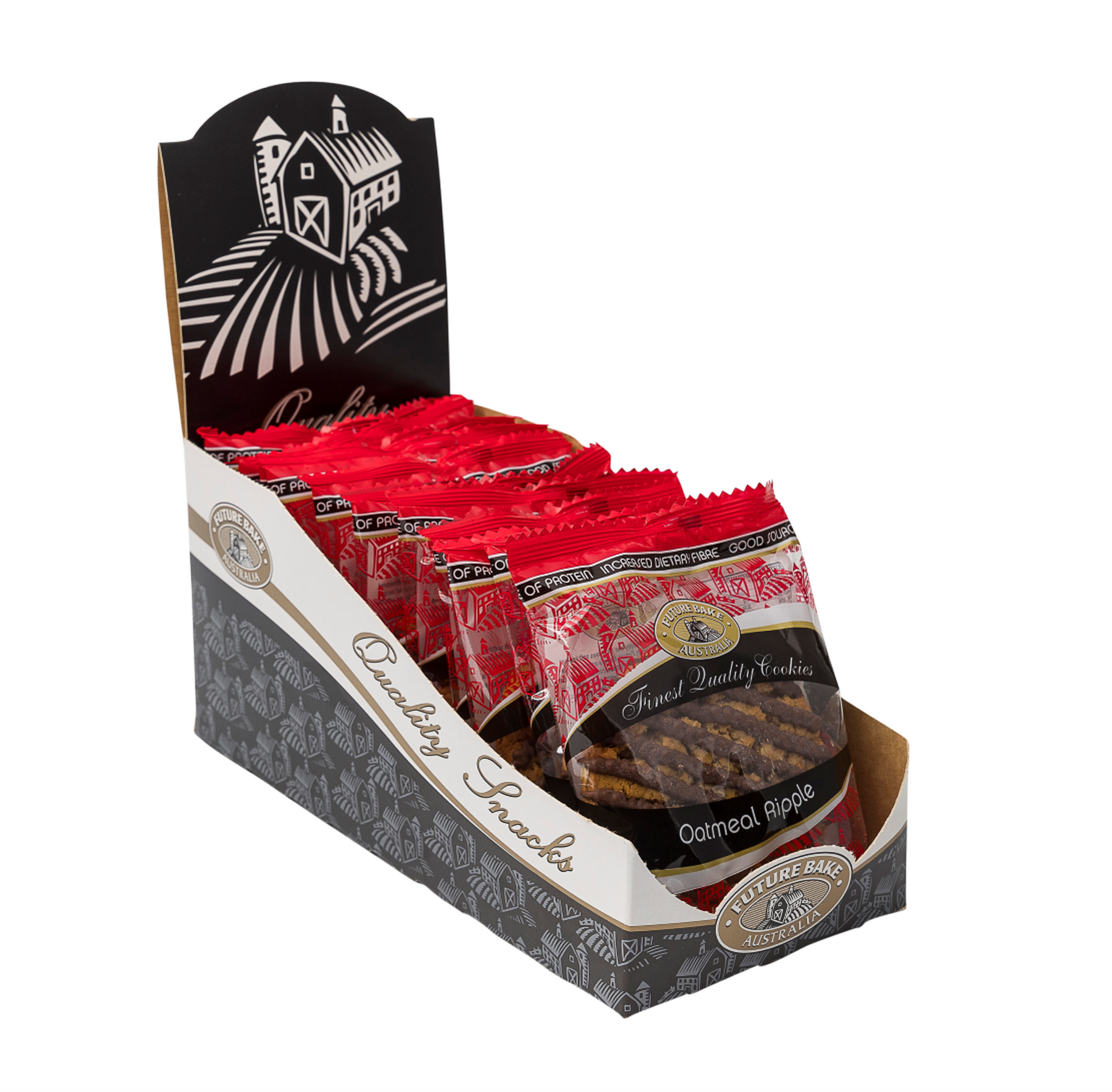 An amazing tasting home made style oatmeal cake, covered with irresistible chocolate ripple.